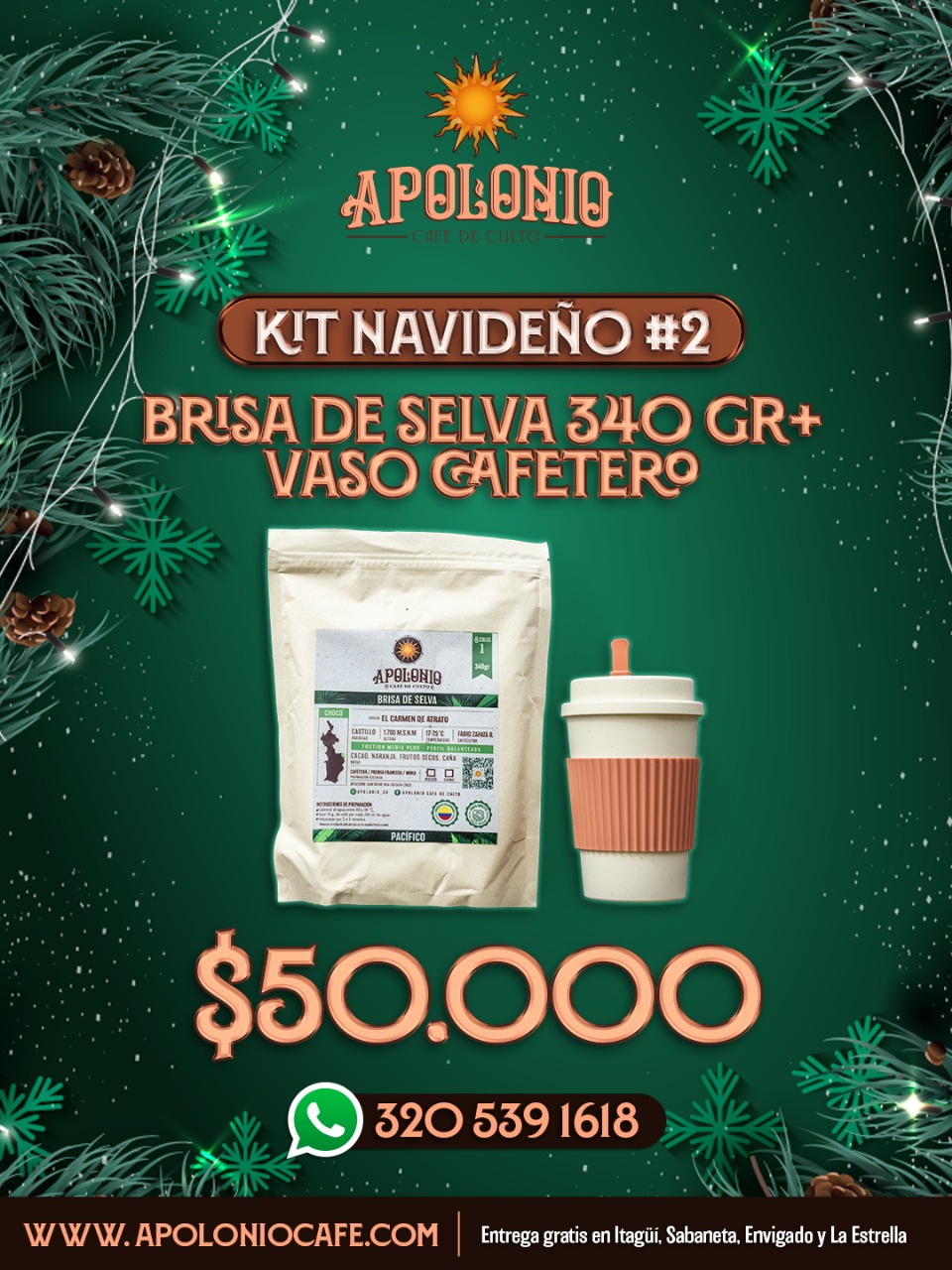 Vaso Cafetero con tapa + Café Brisa de Selva de 340 gramos en presentación molido, perfecto para compartir con amigos y familia disfrutando de un autentico café Colombiano.